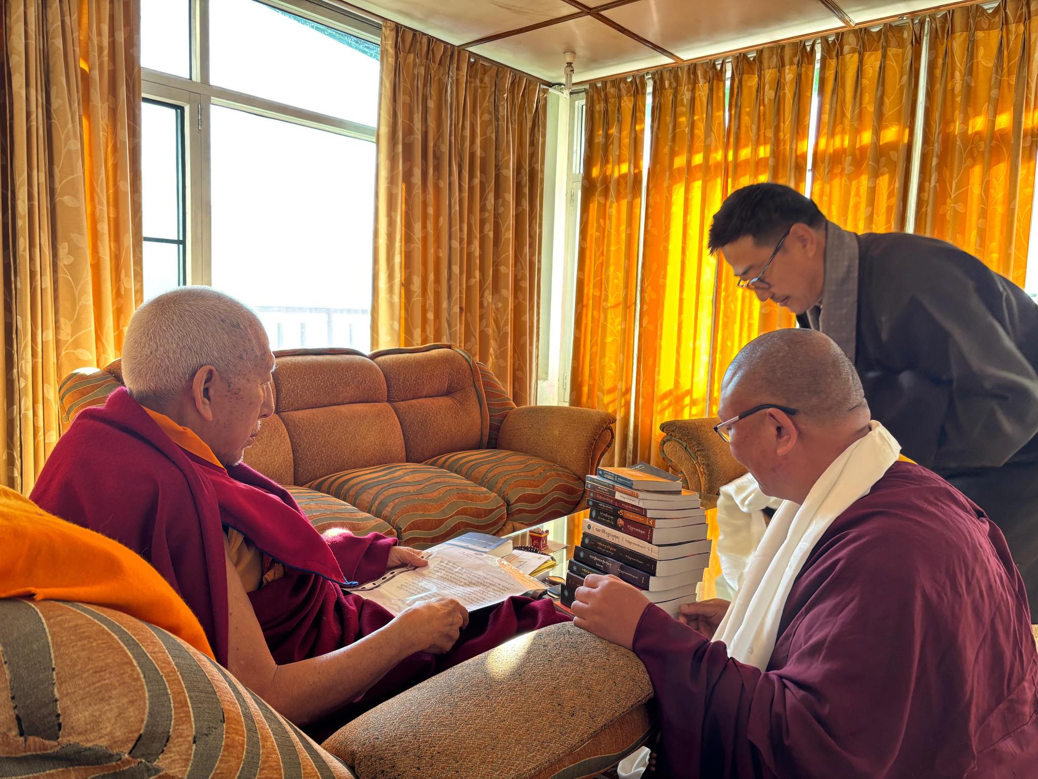 Presenting 13 Tibetan translated books to Professor Samdhong Rinpoche and Secretary Tenzin Taklha